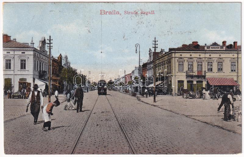 1924 Braila, Strada Regala / street, tram, market, shops (EK) https://www.darabanth.com/hu/41-Nagyaukcio/41.1/Kepeslapok/Romania~17046/1924-Braila-Strada-Regala-street-tram-market-shops-EK~II2909589