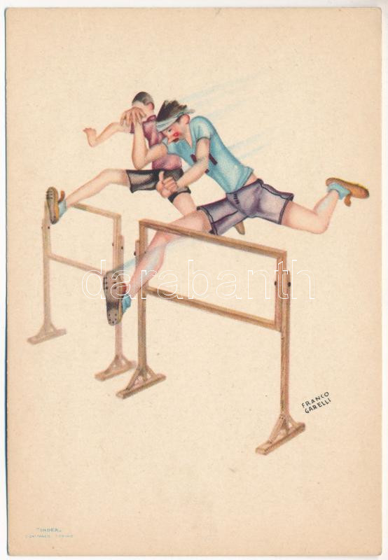 Littoriali Torino V Giuochi Universitari Internazionali 1933 / G.U.F. University International Games, steeplechase, humour / Akadályfutás, olasz sport humor s: Franco Garelli