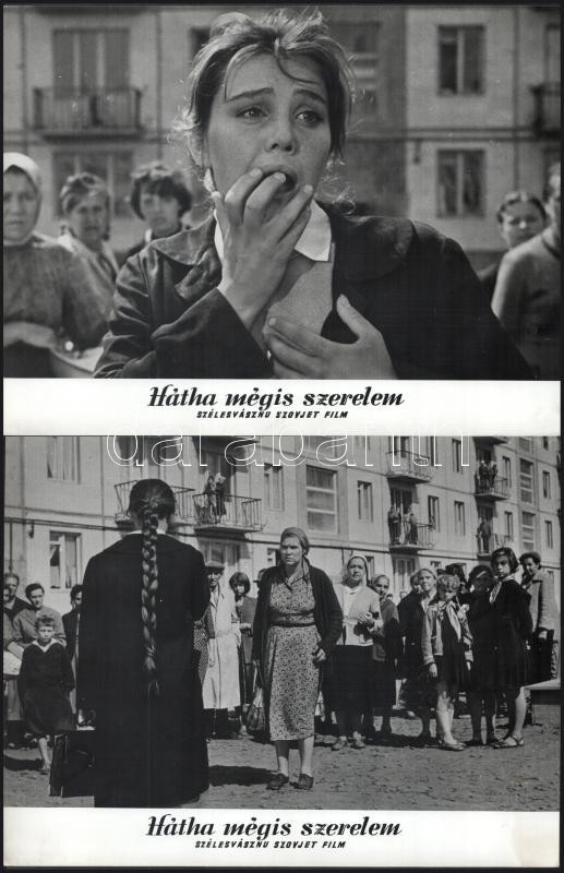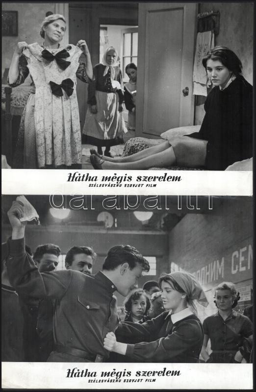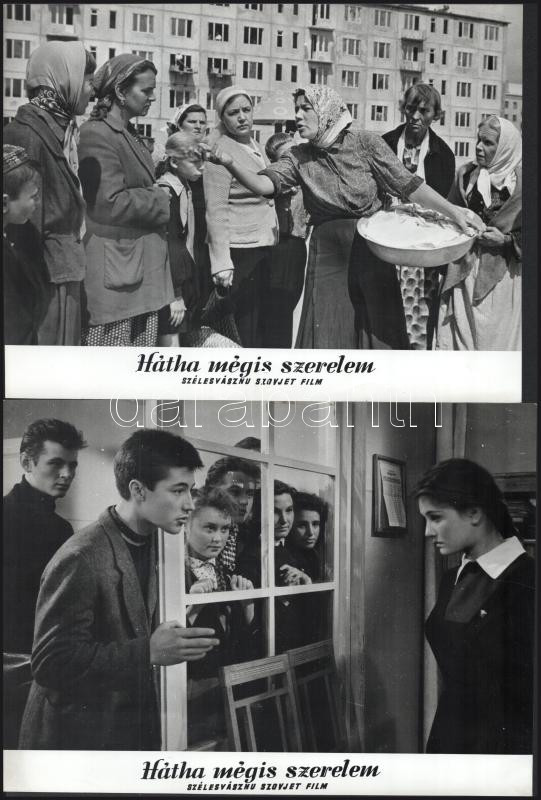 cca 1962 ,,Hátha mégis szerelem" című szovjet film jelenetei és szereplői, 21 db vintage produkciós filmfotó ezüst zselatinos fotópapíron, a használatból eredő (esetleges) kisebb hibákkal, 18x24 cm