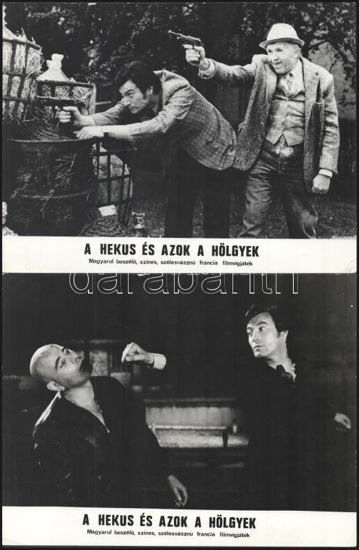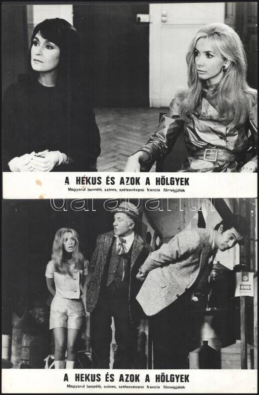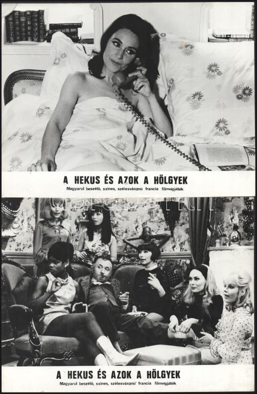 cca 1968 ,,A hekus és azok a hölgyek" című francia filmvígjáték jelenetei és szereplői, 13 db vintage produkciós filmfotó ezüst zselatinos fotópapíron, a használatból eredő (esetleges) kisebb hibákkal, 18x24 cm