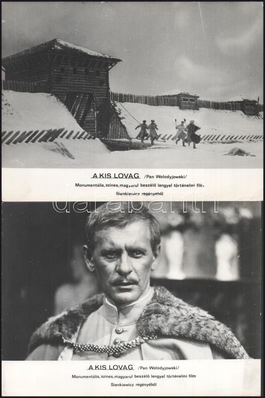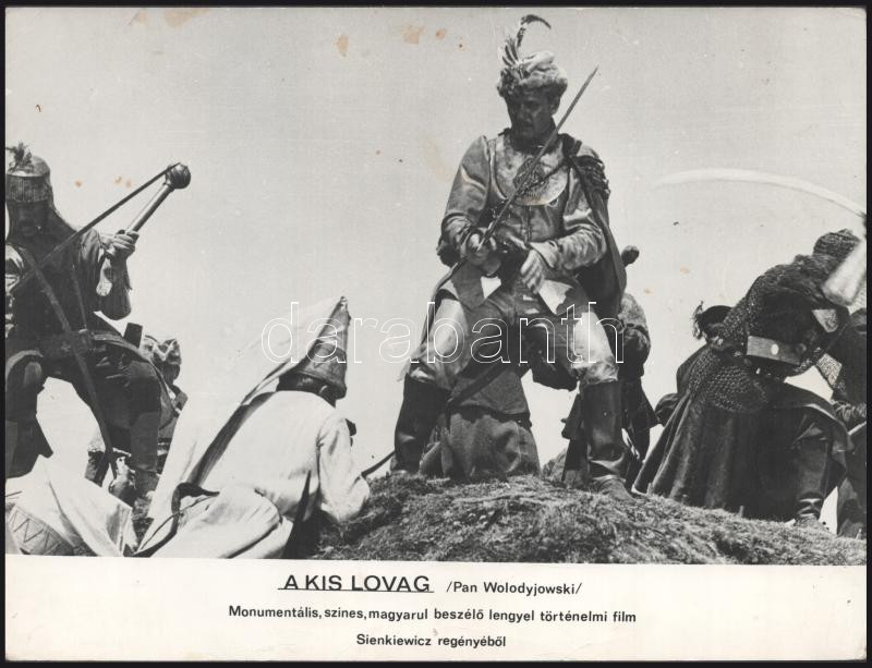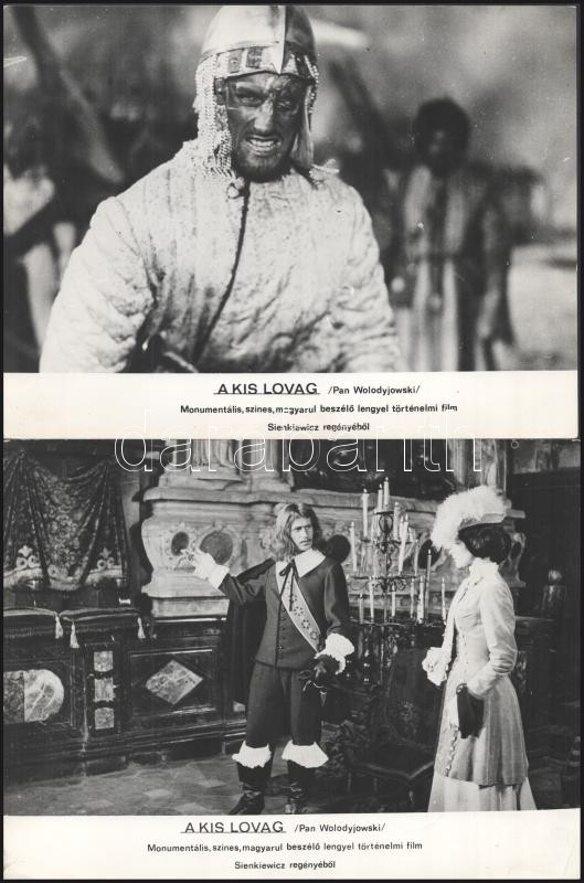 cca 1969 ,,A kis lovag" című lengyel történelmi film jelenetei és szereplői, 6 db vintage produkciós filmfotó ezüst zselatinos fotópapíron, a használatból eredő (esetleges) kisebb hibákkal, + hozzáadva egy szöveges kisplakát, 18x24 cm