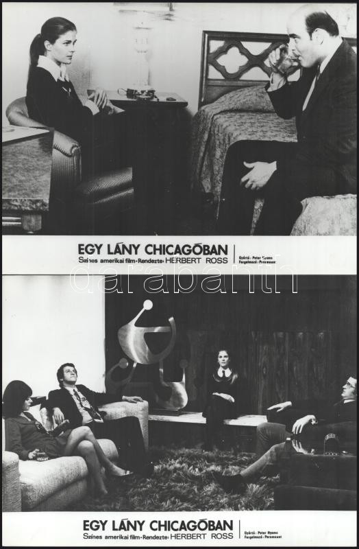 cca 1971 ,,Egy lány Chicagóban" című amerikai film jelenetei és szereplői, 11 db vintage produkciós filmfotó ezüst zselatinos fotópapíron, a használatból eredő (esetleges) kisebb hibákkal, 18x24 cm