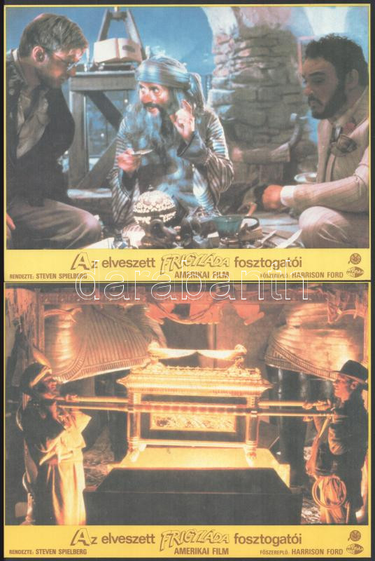 cca 1981 ,,Az elveszett frigyláda fosztogatói" című amerikai film jelenetei és szereplői, 5 db produkciós filmfotó nyomdatechnikával sokszorosítva kartonpapírra (nyomat), egyoldalas nyomással, a használatból eredő (esetleges) kisebb hibákkal, 18x24 cm