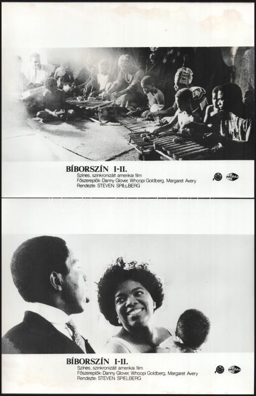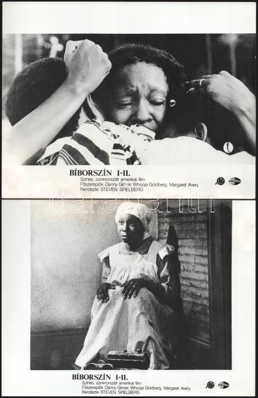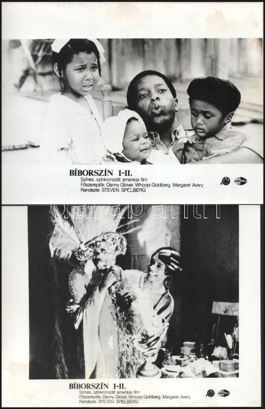 cca 1985 Steven Spielberg ,,Bíborszín" című amerikai filmjének jelenetei és szereplői, 9 db vintage produkciós filmfotó ezüst zselatinos fotópapíron, a használatból eredő (esetleges) kisebb hibákkal, 18x24 cm