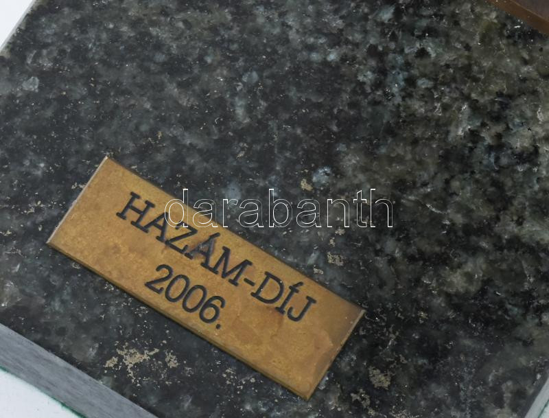 Ujfalussy József (1920-2010) zenetörténész 2006-ban megkapott Hazám-díja. Bronz József Attila alak, márvány talapzaton, alkotó: Varga Imre (1923-2019), szignózott. Hibátlan, 20x11x34 cm