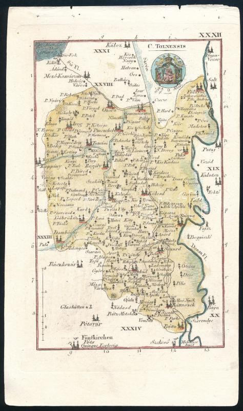 1804 Czetter Sámuel (1765-1829 k.): Tolna vármegye térképe. C[omitatus] Tolniensis, In: [Korabinszky János Mátyás]: Korabinsky, Johann Matthias: Atlas Regni Hungariae Portatilis LVIII. Bécs, 1804. Schaumburg und Compagnie, színezett rézmetszet,10,5x16,5 cm.