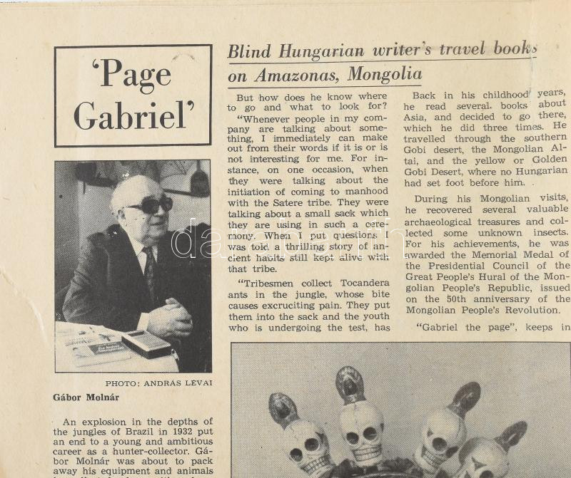 Molnár Gábor (1908-1980) vadász, író. feltehetően kiadtlan gépelt kéziratai 14 db különböző című hosszabb-rövidebb munka, valamint egy gépelt bibliográfia.