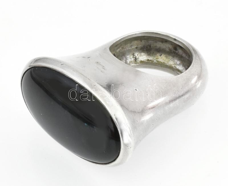 Ezüst(Ag) Péter Vladimir (1947-) által tervezett gyűrű ónixszal, jelzett (Wladis), méret: 57, bruttó: 33,5 g, reprodukálva a Horváth-Kelényi-Buzinkay-Ébli: Értékmentő szenvedély című könyv 67. oldalán. Kiállítva: Bp., 2008, Iparművészeti Múzeum.