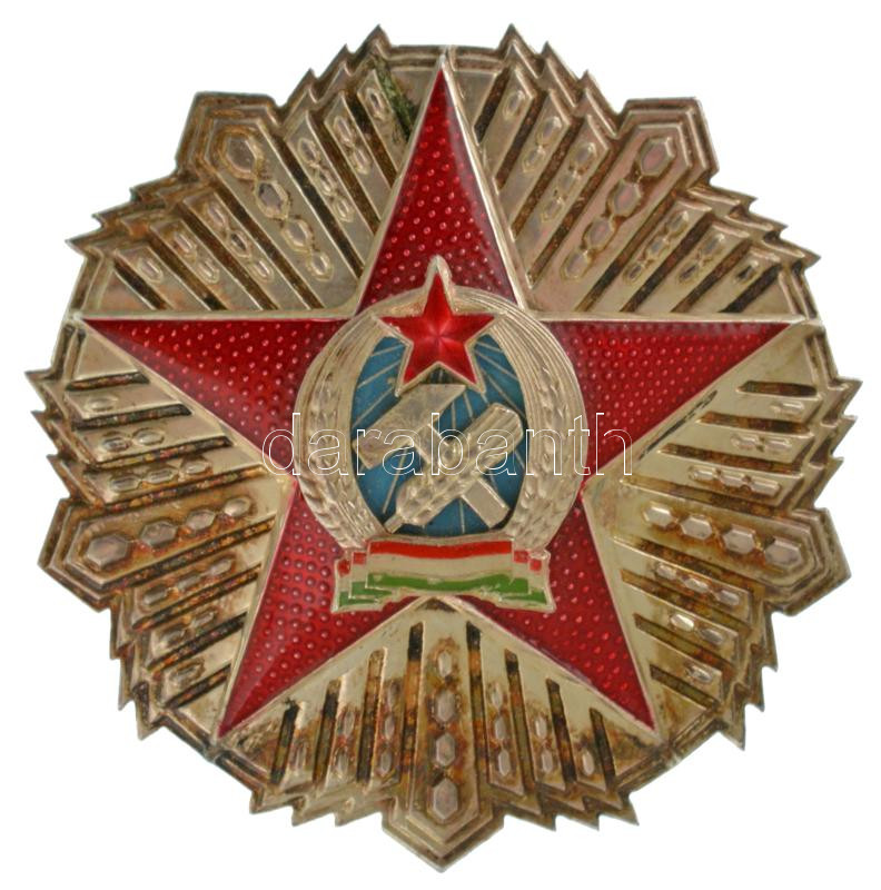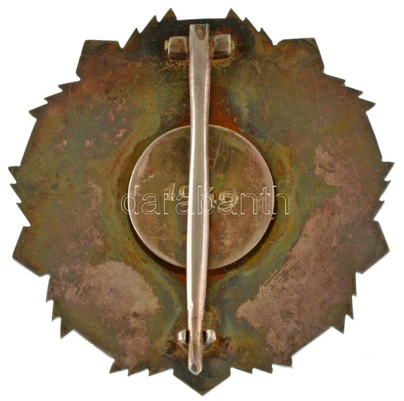 1949. "Magyar Népköztársasági Érdemrend III. fokozata" zománcozott, ezüstözött bronz kitüntetés, a tű MÁPV verdejel nélkül, nem adományozott, feltehetően az 1980-as években a Pénzverőben készült példány (60mm) T:AU patina / Hungary 1949. "Order of Merit of the Hungarian People's Republic, 3rd Grade" enamelled, silver plated bronze decoration, the pin without MÁPV mark, unawarded, later piece from the 1980's (60mm) C:AU patina