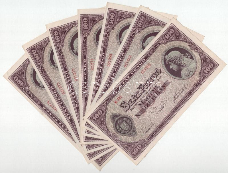 Leírás: 1945. 100P (7x) két részletben sorszámkövetők T:AU / Hungary 1945. 100 Pengő (7x) consecutive serials in two parts C:AU