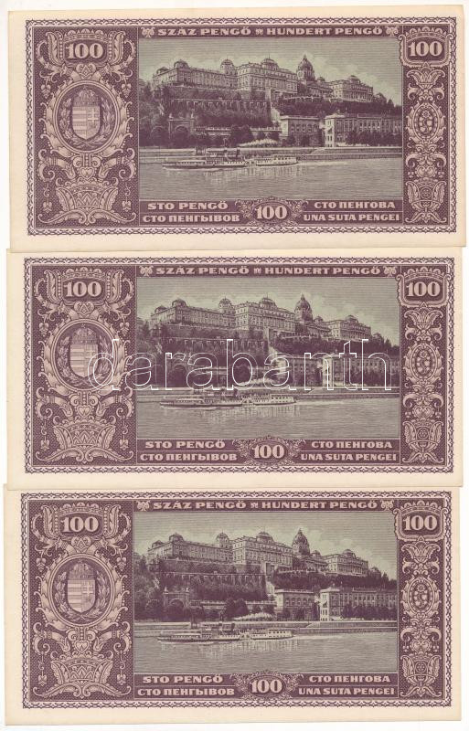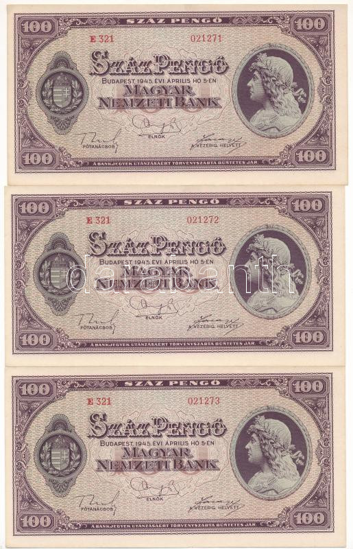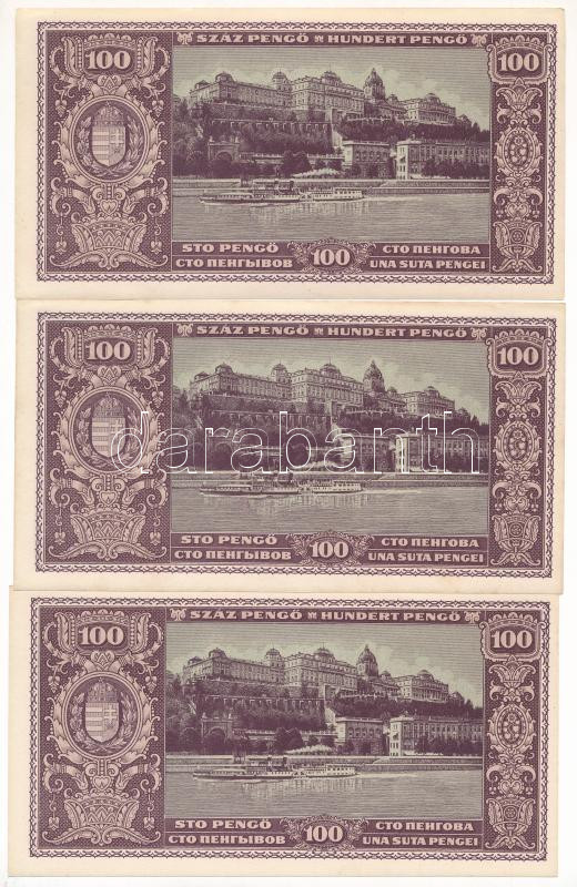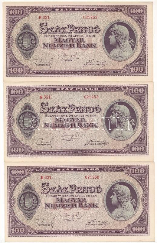 1945. 100P (7x) két részletben sorszámkövetők T:AU / Hungary 1945. 100... https://www.darabanth.com/hu/41-Nagyaukcio/41.1/Numizmatika/Magyar-bankjegyek~16829/1945-100P-7x-ket-reszletben-sorszamkovetok-TAU-Hungary-1945-100-Pengo-7x-consecutive-~II3001231