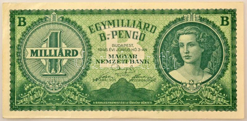 1946. 1.000.000.000BP T:XF hajtatlan, több kisebb hajlás, sarokhajlás ... https://www.darabanth.com/hu/41-Nagyaukcio/41.1/Numizmatika/Magyar-bankjegyek~16829/1946-1000000000BP-TXF-hajtatlan-tobb-kisebb-hajlas-sarokhajlas-Hungary-1946-10000000~II2992273