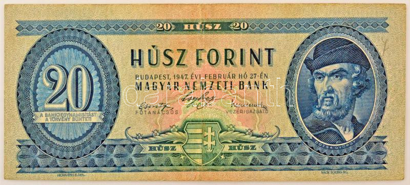 Leírás: 1947. 20Ft "C 054 090452" T:F,VG / Hungary 1947. 20Ft "C 054 090452" C:F,VG Adamo F10, Krause P#162