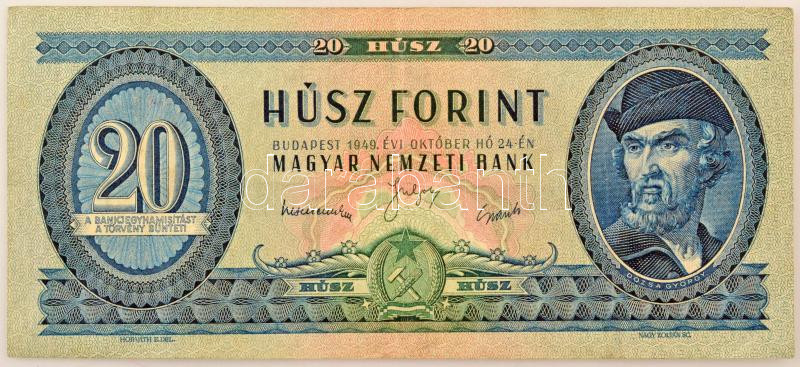 1949. 20Ft "C 819 058005" T:F / Hungary 1949. 20Ft "C 8... https://www.darabanth.com/hu/41-Nagyaukcio/41.1/Numizmatika/Magyar-bankjegyek~16829/1949-20Ft-C-819-058005-TF-Hungary-1949-20Ft-C-819-058005-CF-Adamo-F11-Krause-P23165~II2991495