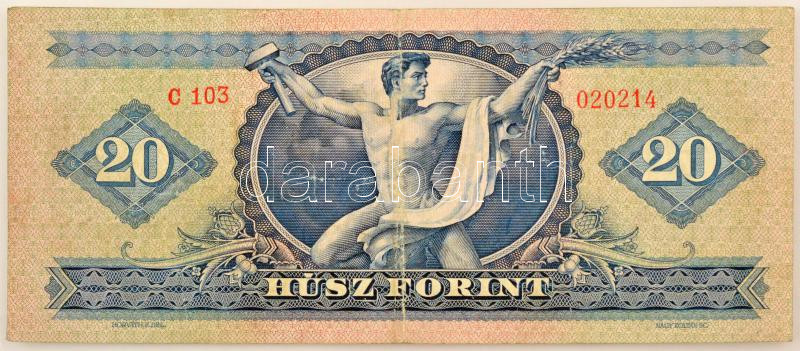 1960. 20Ft "C 103 020214" T:F / Hungary 1960. 20Ft "C 1... https://www.darabanth.com/hu/41-Nagyaukcio/41.1/Numizmatika/Magyar-bankjegyek~16829/1960-20Ft-C-103-020214-TF-Hungary-1960-20Ft-C-103-020214-CF-Adamo-F12-Krause-P23169~II2991518