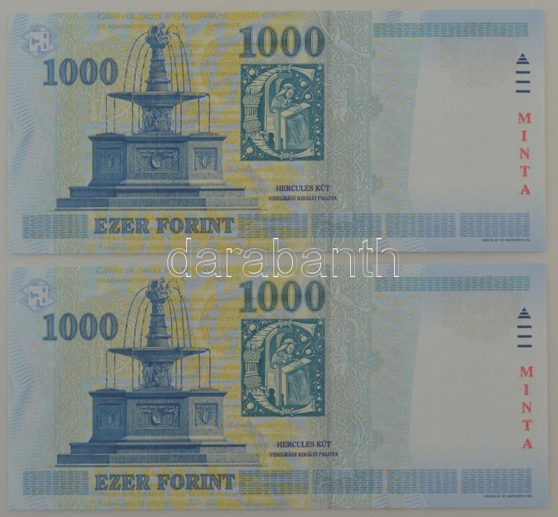 Leírás: 2006. 1000Ft (2x) sorszámkövetők "DA 0000031 - DA 0000032", piros "MINTA" felülnyomással T:UNC / Hungary 2006. 1000 Forint (2x) consecutive serials "DA 0000030 - DA 0000031" with "MINTA (SPECIMEN)" overprint C:UNC