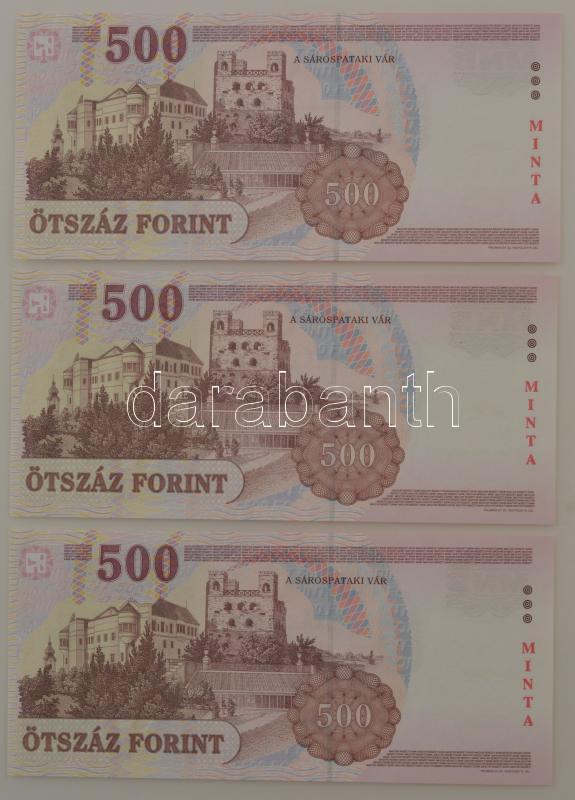 2008. 500Ft (3x) sorszámkövetők, piros "MINTA" felülbélyegzé... https://www.darabanth.com/hu/41-Nagyaukcio/41.1/Numizmatika/Magyar-bankjegyek~16829/2008-500Ft-3x-sorszamkovetok-piros-MINTA-felulbelyegzessel-EC-0000292-EC-0000294-TU~II3004988