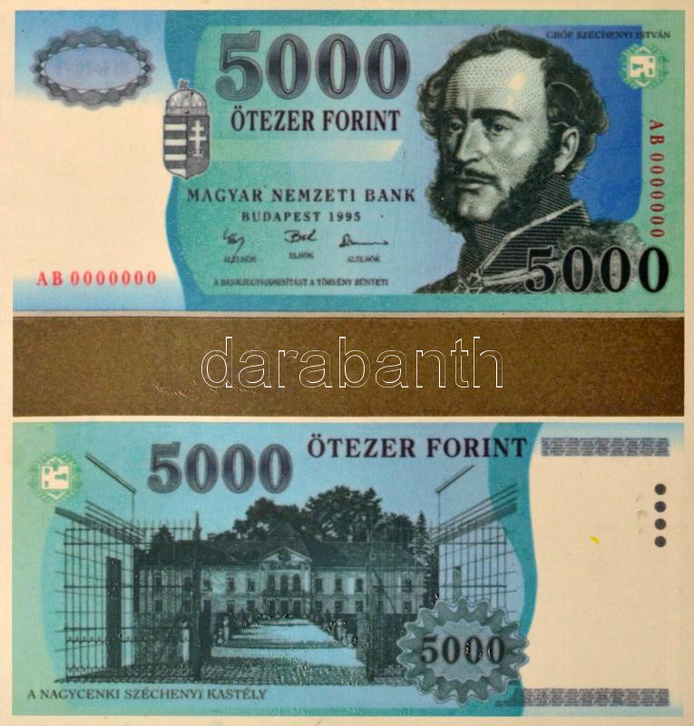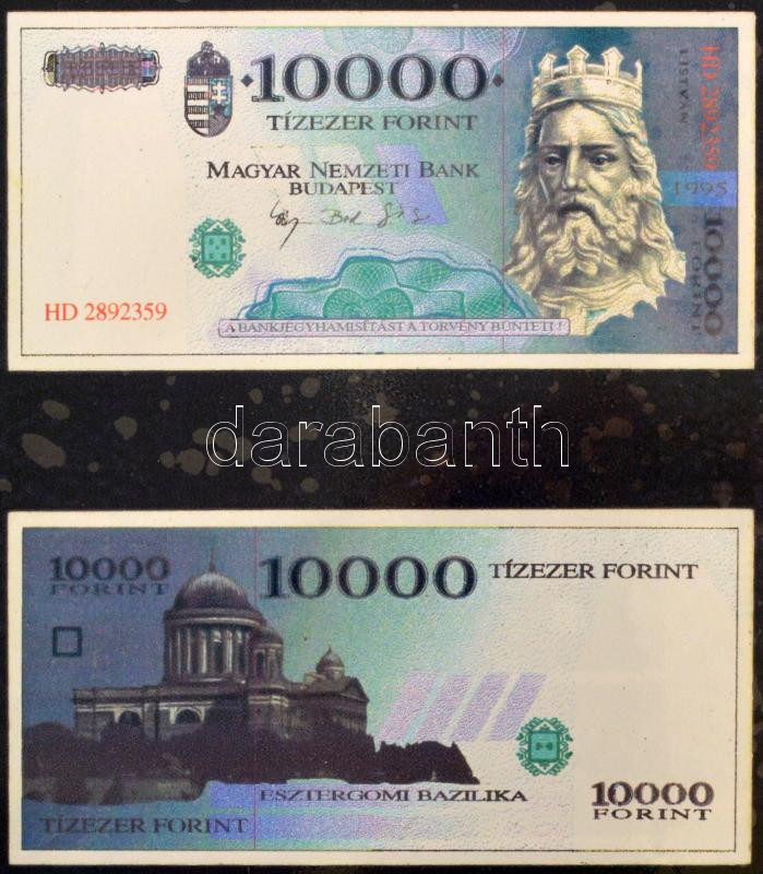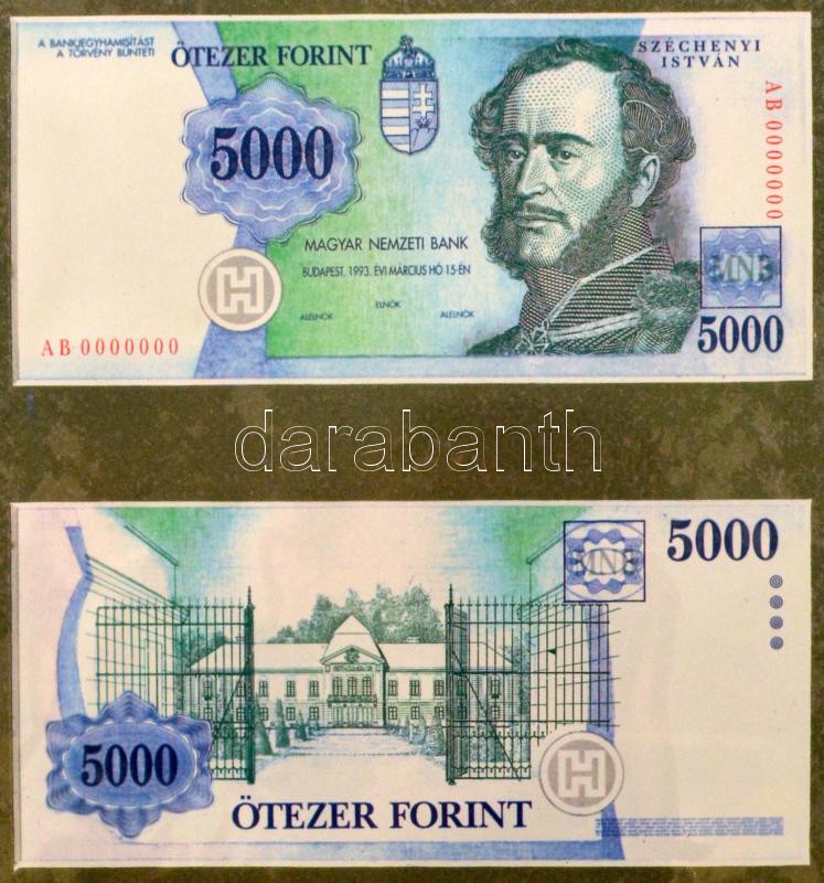 ~1995. 19 darabos (ebből 18 darab különböző), az új forint bankjegytervezeteiből álló tétel, 100-200-500-1000-2000-5000-10.000 forintos címletek. Egyoldalas, fényes nyomatok, elő- és hátlapok párban, valamint egy nagyméretű Szent István grafika T:AU