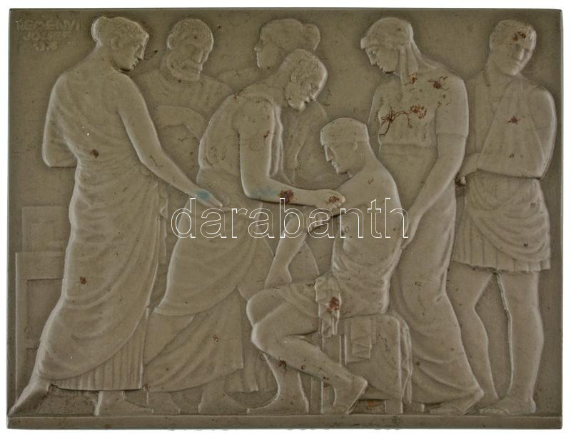 Reményi József (1887-1977) 1916. "Kötözőhely" Fe plakett, Éremkedvelők Egyesületének tagsági érme, peremén "ÉKE 1916", sorszámozott, "103"-as sorszámmal (69x90mm) T:AU kis rozsdafoltok / Hungary 1916. "Kötözőhely" Fe plaque, membership medal of the Association of Medal Enthusiasts, with "ÉKE 1916" and serial number "103" on edge Sign: József Reményi (69x90mm) C:XF small spots of rust