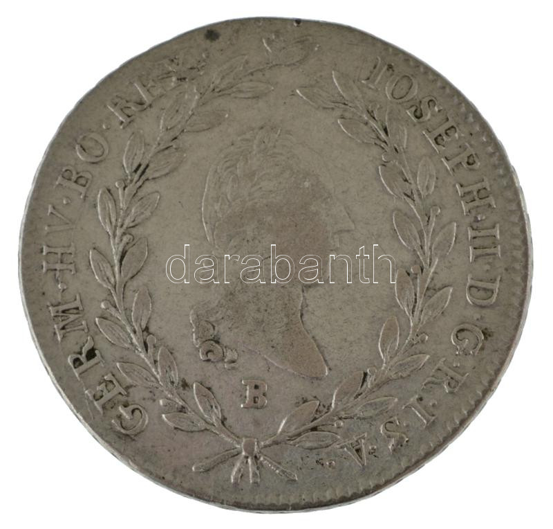 1788B 20kr Ag "II. József" (6,58g) T:XF / Hungary 1788B 20 K... https://www.darabanth.com/hu/41-Nagyaukcio/41.1/Numizmatika/Magyar-es-magyar-verdejelu-fem-es-ezustpenzek~16830/1788B-20kr-Ag-II-Jozsef-6-58g-TXF-Hungary-1788B-20-Kreuzer-Ag-Joseph-II-6-58g-CXF-Husz~II2996780