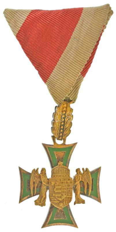 1923. "I. Osztályú Tiszti Szolgálati Jel" aranyozott bronz kitüntetés eredeti kopottas mellszalaggal T:AU,XF / Hungary 1923. "Officers' Distinction for Long Service, 1st Class" gilt bronze decoration with worn, faded ribbon C:AU,XF