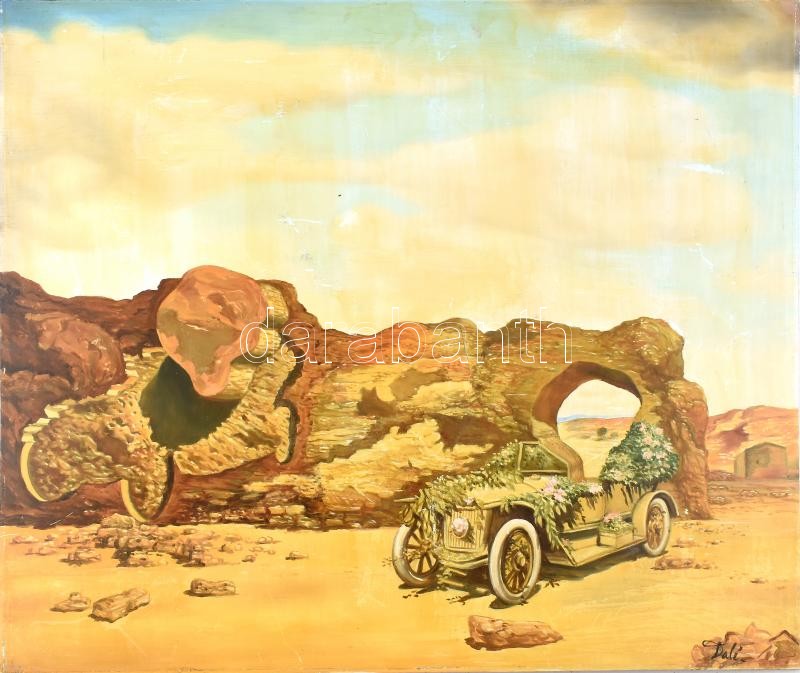 Dali jelzéssel: Meseautó. Olaj, falemez, 65×80 cm https://www.darabanth.com/hu/410-Gyorsarveres/410.0/Festmenyek-es-grafikak/Festmenyek-es-grafikak-jelzessel-jelzes-nelkul~500002/Dali-jelzessel-Meseauto-Olaj-falemez-65C39780-cm~II2547318