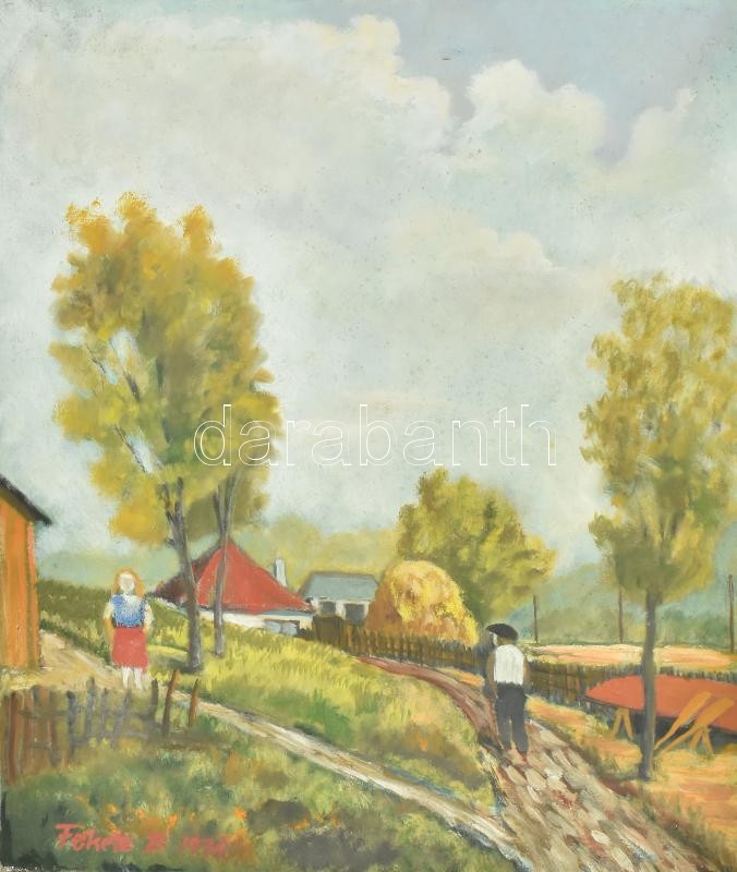 Leírás: Fekete B. 1971 jelzéssel: Kirándulók. Olaj, vászon. 60x50 cm