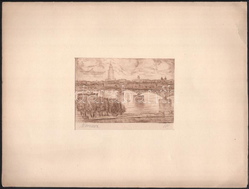 Leírás: VP(?) jelzéssel: Warszawa (Varsó). Rézkarc, papír, paszpartuban, 12x8,5 cm