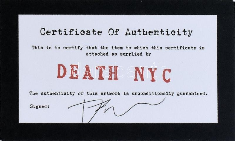 Death & Co. Artery NYC. Pop-art szitanyomat. sorszámozott, ceruzával jelzett 10/100, szárazpecséttel, matricával, kártyával 43x29 cm / Silkscreen, numbered, signed, with dry seal and sticker