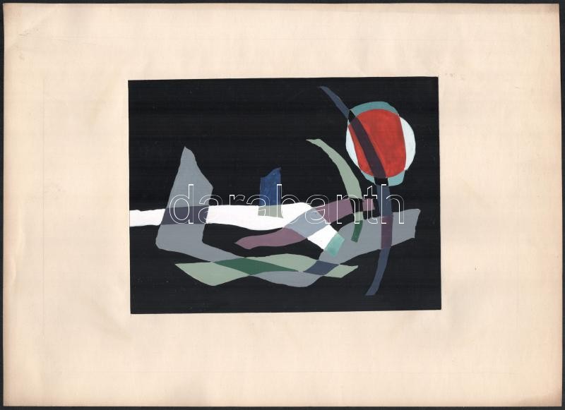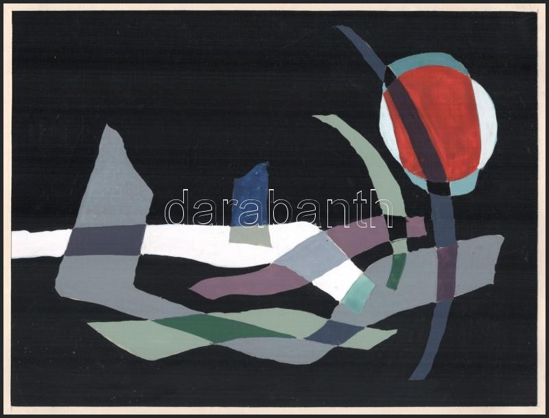 Leírás: Kamarás Béla (?-?, működött a 20. sz. közepén): Absztrakt kompozíció. Tempera, papír, jelzés nélkül, paszpartuban, 14,5x19 cm