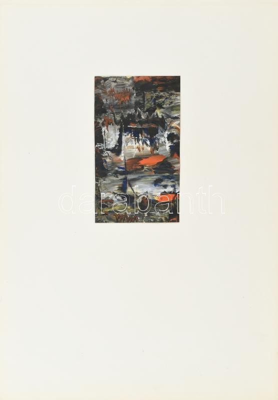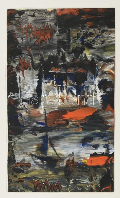 Körtvélyessy Magda (1919-2007): Izzó táj. Olaj, papír, jelzés nélkül, papírra kasírozva. 15,5x9 cm. Soós Imre (1921-2013) műgyűjtő, művészeti író, a Kisgrafika folyóirat szerkesztője, a Magyar Nemzeti Galéria Baráti Köre alelnökének hagyatékából.