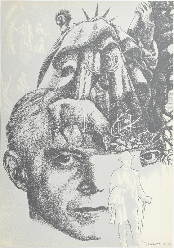 Töreky Ferenc (1922-2016): Bartók. Ofszet, papír, jelzett. Az 1981-ben, Bartók Béla 100. születésnapja alkalmából megjelent grafikai mappából. 46×32,5 cm