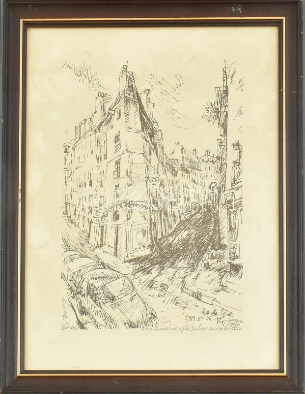Leírás: Varga Vass György: Párizs Rue de Seine 1989. Litográfia, papír. Jelzett. Üvegezett keretben. 28x20 cm