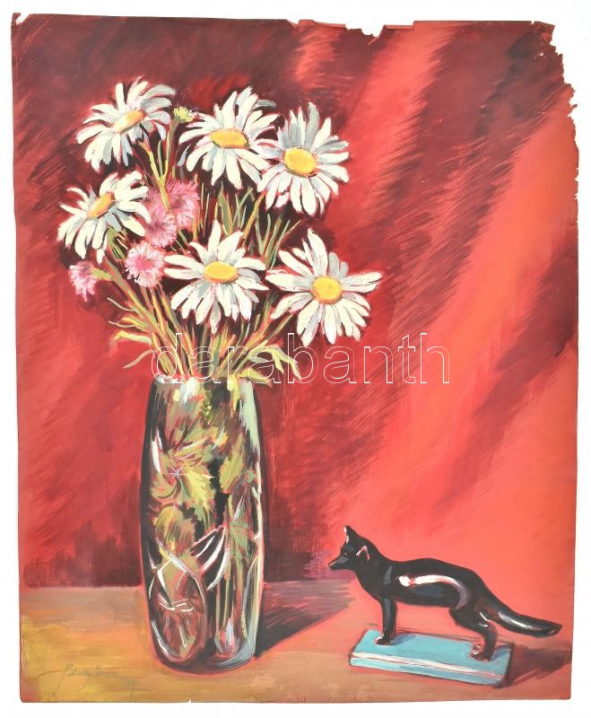 Leírás: vitéz Pataky Ferenc (1897-?): Műtermi csendélet. Tempera, papír, jelzett, sérült, 60x50 cm