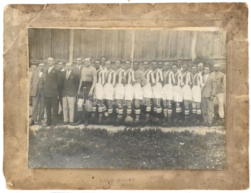 Leírás: 1931 Soroksár, a Mercur futballcsapat tablófotója, a kartonon jelzett, feliratozott, a fotó levált a kartonról, 26,5x18,5 cm