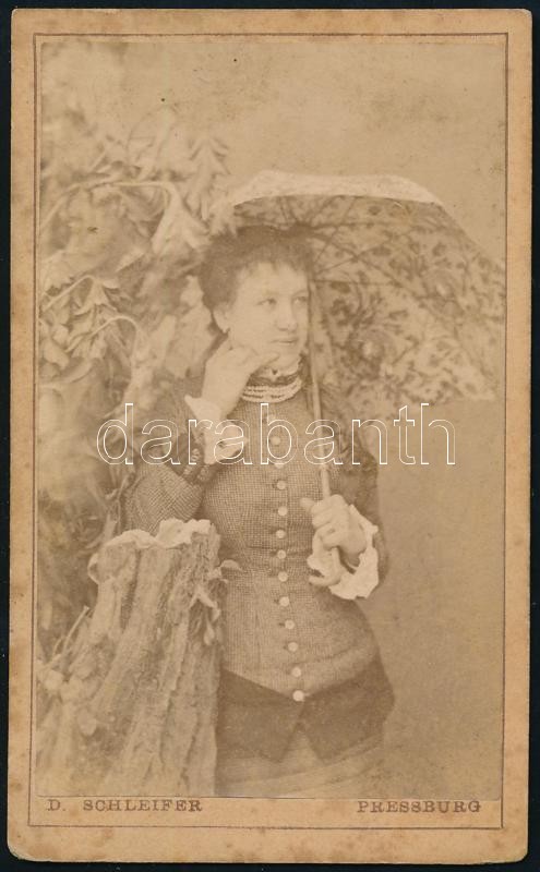 cca 1880 Női portré, keményhátú fotó Schleifer pozsonyi műterméből, 10... https://www.darabanth.com/hu/410-Gyorsarveres/410.0/Fotomuveszet/Foto~500022/cca-1880-Noi-portre-kemenyhatu-foto-Schleifer-pozsonyi-mutermebol-10-5C3976-5-cm~II2550688