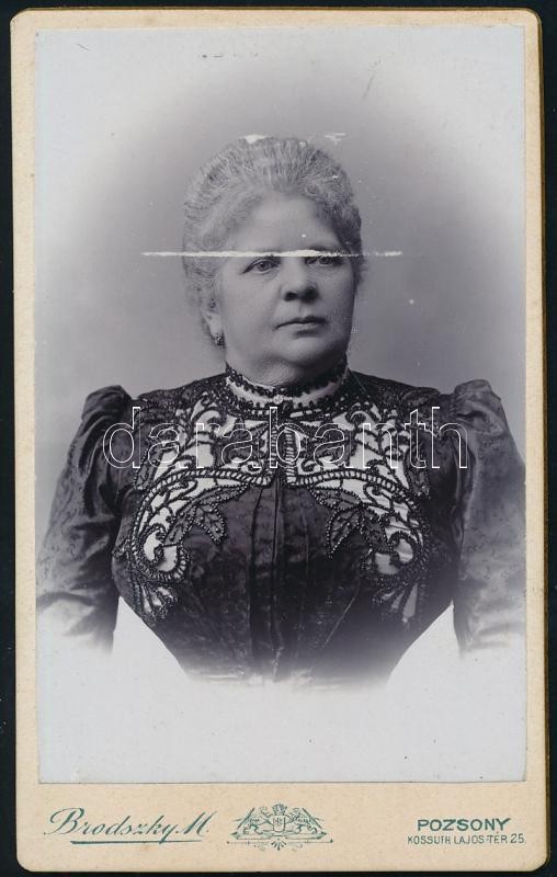 cca 1890 Női portré, keményhátú fotó Brodszky pozsonyi műterméből, sér... https://www.darabanth.com/hu/410-Gyorsarveres/410.0/Fotomuveszet/Foto~500022/cca-1890-Noi-portre-kemenyhatu-foto-Brodszky-pozsonyi-mutermebol-serulessel-10-5C3976-5~II2550440