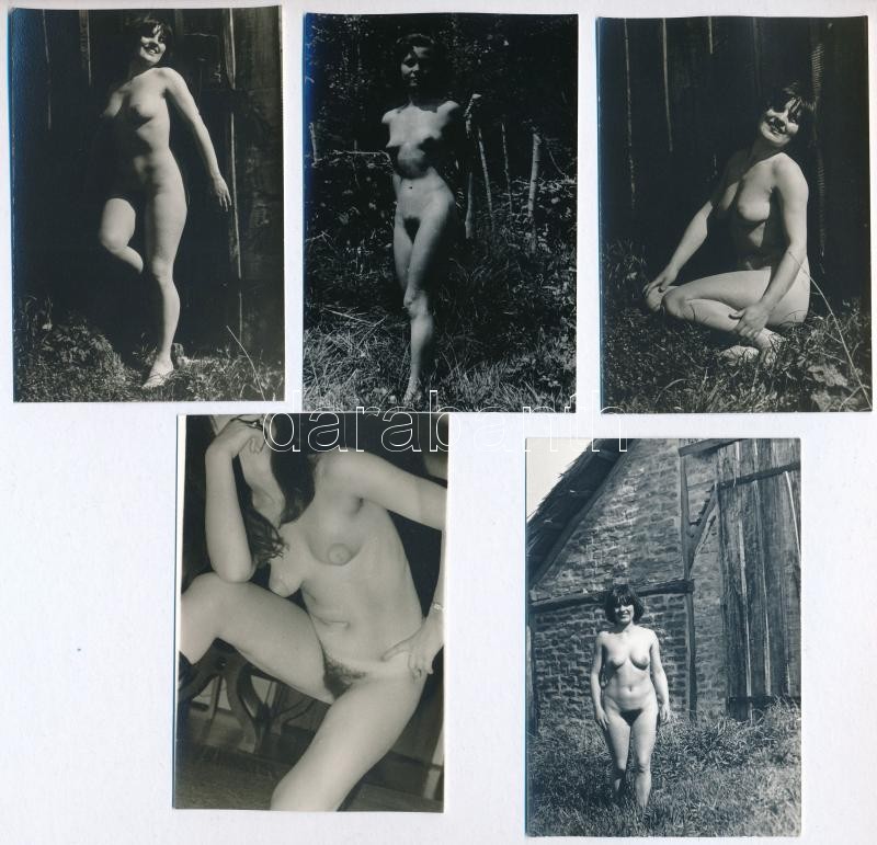 Leírás: cca 1977 Marinkay István (1920-?) veszprémi fotóművész hagyatékából 5 db jelzés nélküli vintage fotó, az aktfényképezés műfajából, 9x6 cm