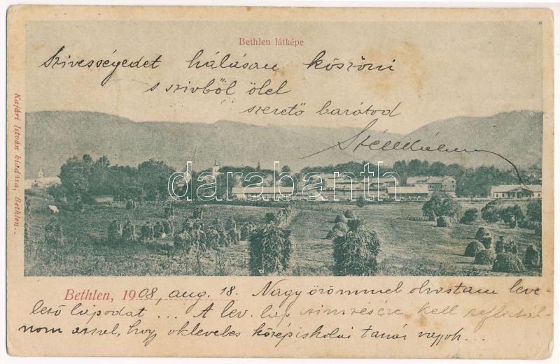 1908 Bethlen, Beclean; látkép. Kajári István kiadása / general view (f... https://www.darabanth.com/hu/410-Gyorsarveres/410.0/Kepeslapok/Erdely~1500006/1908-Bethlen-Beclean-latkep-Kajari-Istvan-kiadasa-general-view-fl~II2547997