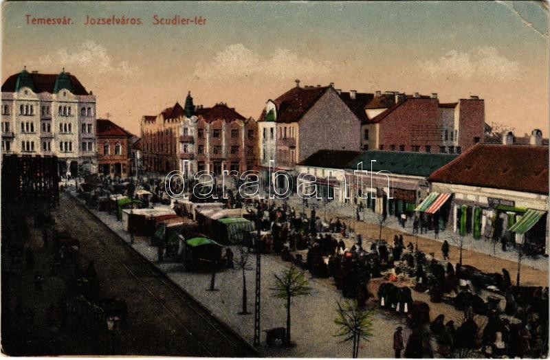 1918 Temesvár, Timisoara; Józsefváros, Scudier tér, piac, üzletek / sq... https://www.darabanth.com/hu/410-Gyorsarveres/410.0/Kepeslapok/Erdely~1500006/1918-Temesvar-Timisoara-Jozsefvaros-Scudier-ter-piac-uzletek-square-market-shops-EK~II2546720