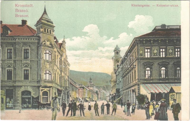 Brassó, Kronstadt, Brasov; Kolostor utca / Klostergasse / street https://www.darabanth.com/hu/410-Gyorsarveres/410.0/Kepeslapok/Erdely~1500006/Brasso-Kronstadt-Brasov-Kolostor-utca-Klostergasse-street~II2350336