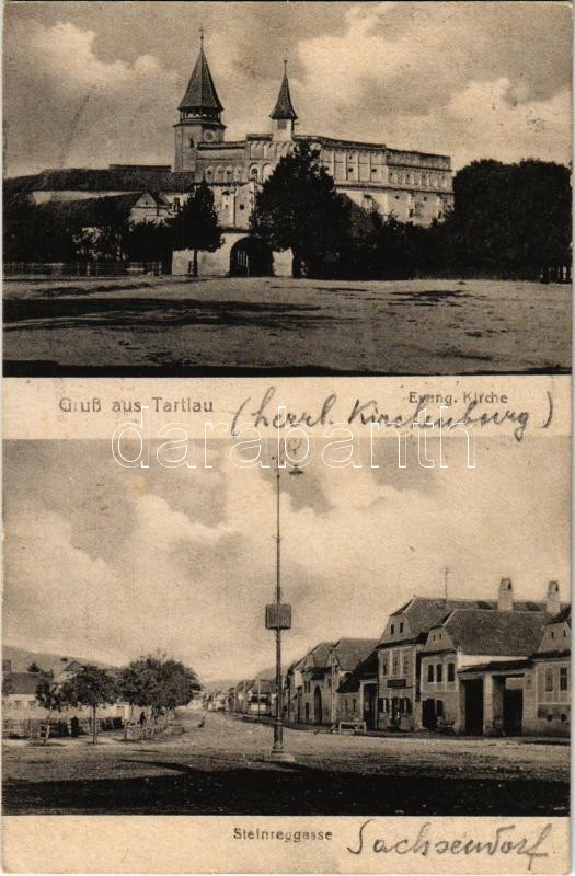Leírás: Prázsmár, Tartlau, Prejmer; Evang. Kirche, Steinreggasse / Evangélikus templom, utca. Rosa Richter kiadása / Lutheran church, street view (EK)