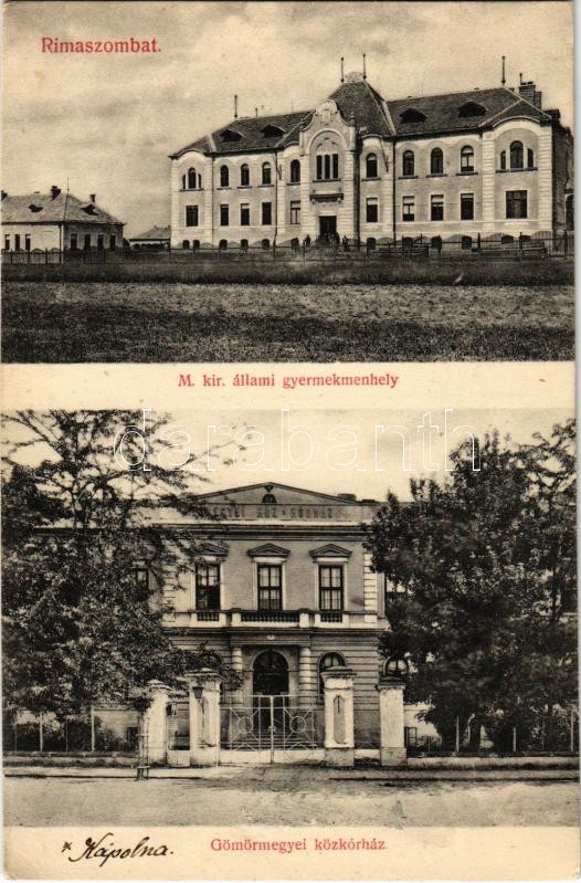 1912 Rimaszombat, Rimavská Sobota; M. kir. állami gyermekmenhely, Gömö... https://www.darabanth.com/hu/410-Gyorsarveres/410.0/Kepeslapok/Felvidek~1500007/1912-Rimaszombat-Rimavska-Sobota-M-kir-allami-gyermekmenhely-Gomormegyei-kozkorhaz-Ifj~II2489495