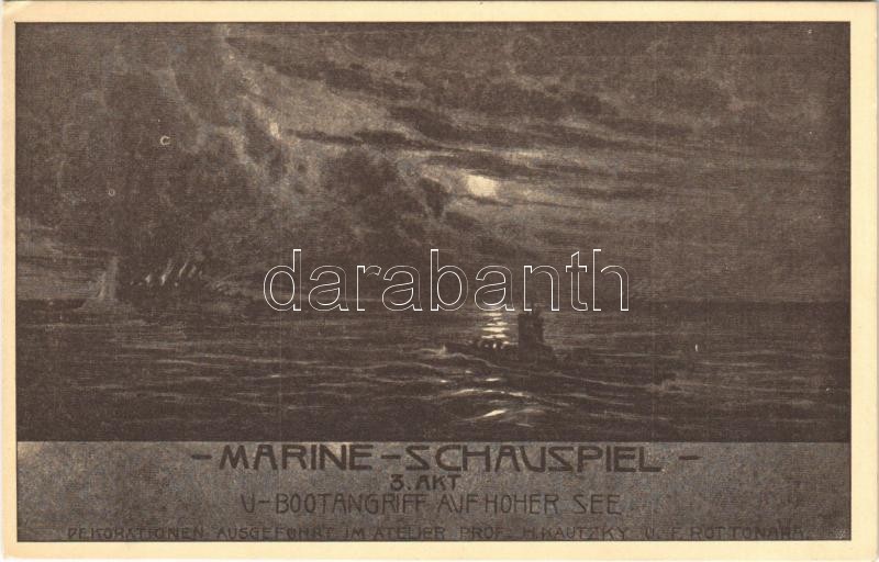 Marine-Schauspiele 1918. 3. Akt. U-Bootangriff auf Hoher See. Ausführung Prof. H. Kautsky u. F. Rottonara Wien / WWI Austro-Hungarian Navy, K.u.K. Kriegsmarine, marine play (EK)