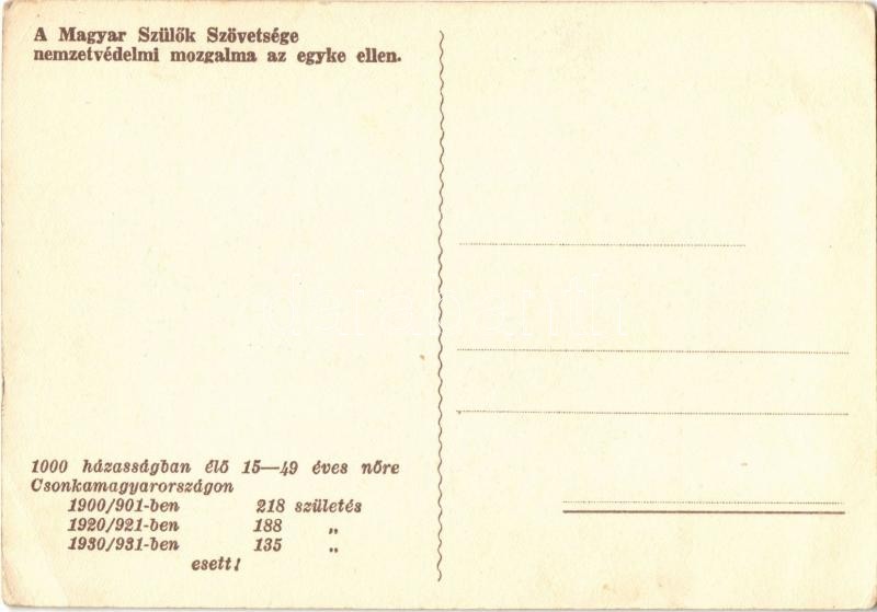 1914 óta 1000000-nál több magyar nem született meg! A Magyar Szülők Szövetsége nemzetvédelmi mozgalma az egyke ellen / Hungarian irredenta propaganda art postcard for the birth rate increase s: Zartler (EK)