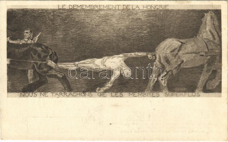 Magyarország földarabolása ciklus I. képe: "Mi csak a fölösleges végtagjait szakgatjuk le!" Kiadja Magyarország Területi Épségének Védelmi Ligája / Dismemberment of Hungary. We are only tearing off the superfluous limbs! Hungarian irredenta propaganda, Trianon s: Unghváry Sándor (EK)