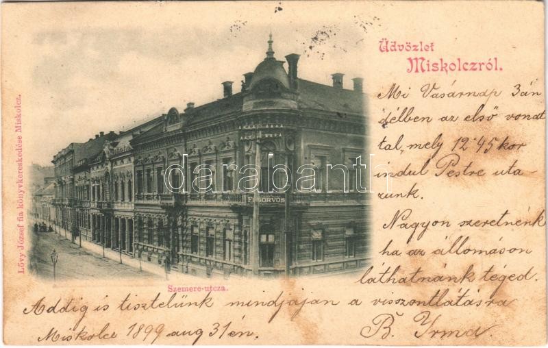 1899 Miskolc, Szemere utca, fogorvos. Lővy József fia kiadása (vágott ... https://www.darabanth.com/hu/410-Gyorsarveres/410.0/Kepeslapok/Magyarorszag~1500005/1899-Miskolc-Szemere-utca-fogorvos-Lovy-Jozsef-fia-kiadasa-vagott-cut~II2382989
