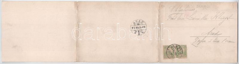 1902 Budapest I. Látkép a Gellérthegyről, Királyi vár, Tabán, építés alatt álló Erzsébet híd, Döbrentei tér. 3-részes kihajtható panorámalap / 3-tiled folding panoramacard (Rb)