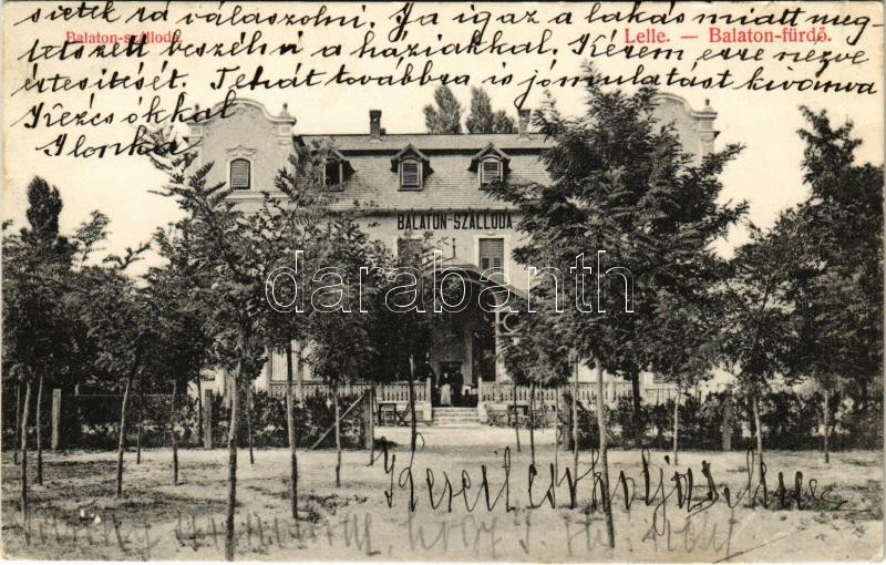 1908 Balatonlelle, Lelle-Balaton-fürdő; Balaton szálloda (EK) https://www.darabanth.com/hu/410-Gyorsarveres/410.0/Kepeslapok/Magyarorszag~1500005/1908-Balatonlelle-Lelle-Balaton-furdo-Balaton-szalloda-EK~II2546439