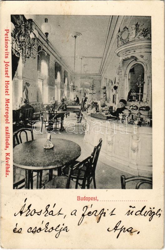 1908 Budapest VII. Petanovits József Hotel Metropol szálloda és kávéház, belső, biliárdasztalok, pincérek és vendégek. Biró Pál fényk. Rákóczi út 58. (EK)